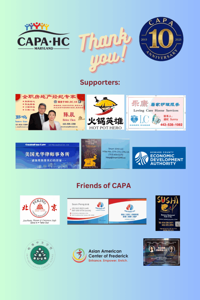 The Chinese American Parent Association of Howard County provides three core services: Family & Youth Education, Community Outreach, and Civic Engagement.